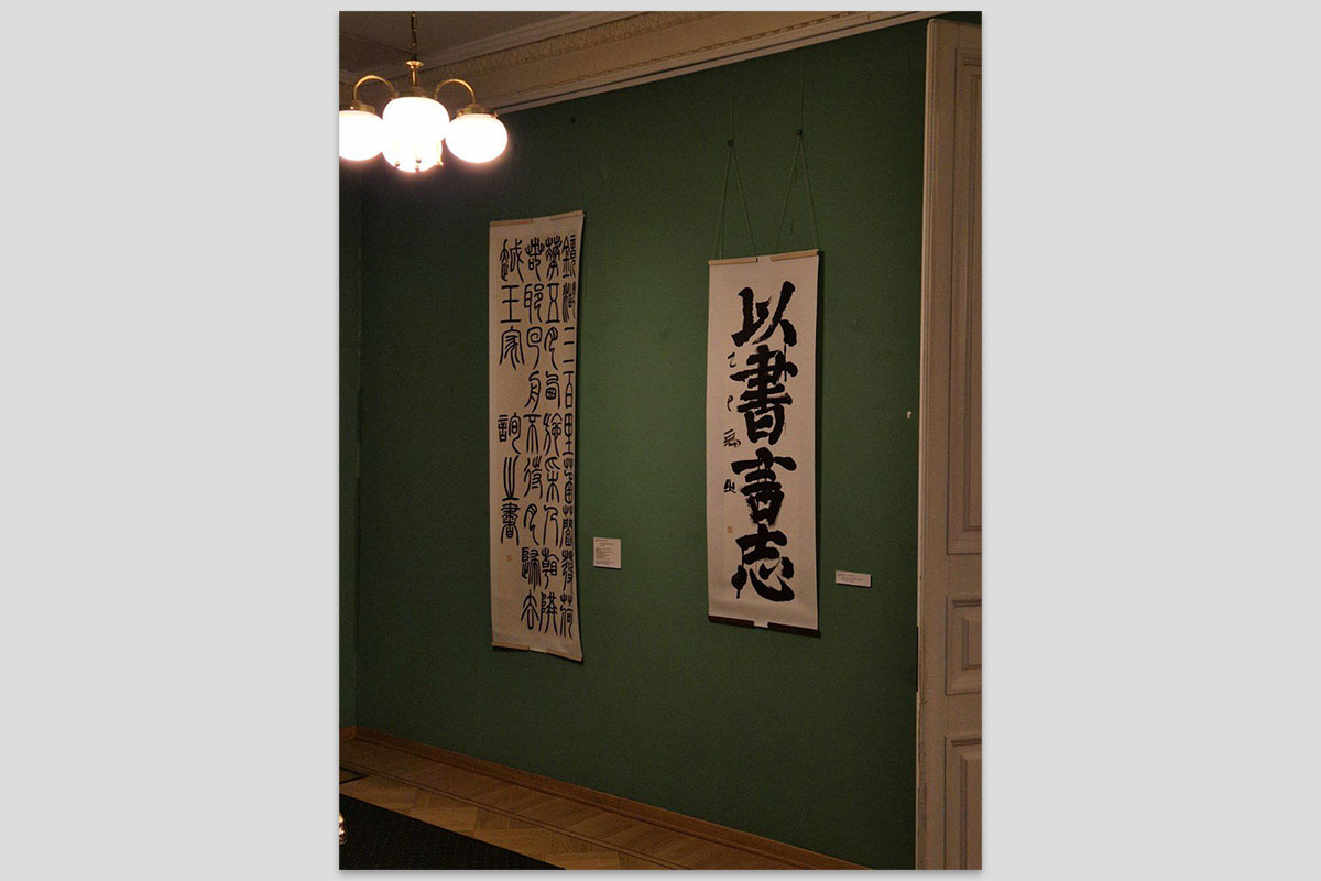 В одном из разделов выставки «Восточное собрание» представлены работы каллиграфа и магистранта Центральной академии изящных искусств Пекина Егора Бетехтина. Художник, вдохновлённый произведениями популярных и малоизвестных авторов классической китайской литературы, передаёт глубину восточной мысли через самое почитаемое из всех традиционных искусств Китая — каллиграфию.