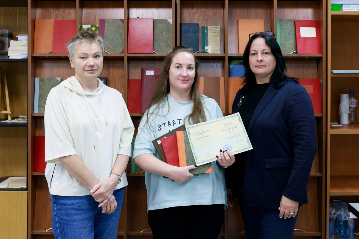 Курс «Реставрация переплёта» в Российской государственной библиотеке окончили сотрудники региональных центров консервации и реставрации из Новосибирска, Кирова, Нижнего Новгорода и Рязани.