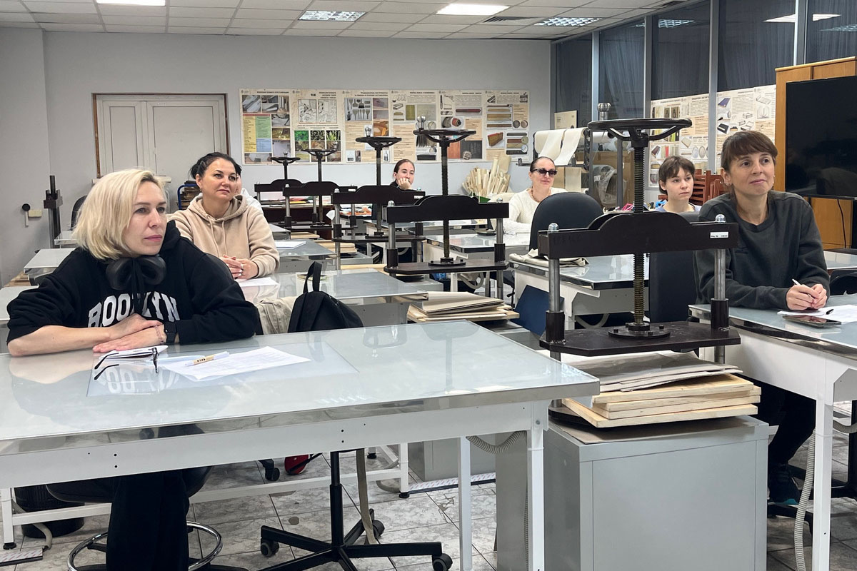 Полученные теоретические знания и практические навыки дополнило профессиональное общение с коллегами — слушатели посетили реставрационные мастерские и основное книгохранилище Ленинки.