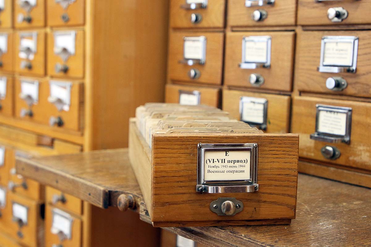 РГБ предоставляет доступ к картотекам отдела военной литературы, содержащим библиографическую информацию из разных источников, в том числе малодоступных, о различных периодах истории военного дела, всевозможных аспектах становления и бытования армии в России и за рубежом. С ними могут работать специалисты в области военного дела, историки, широкий круг читателей. Подробности рассказывает заместитель заведующего отделом библиотечно-информационного обслуживания Надежда Давыдова.