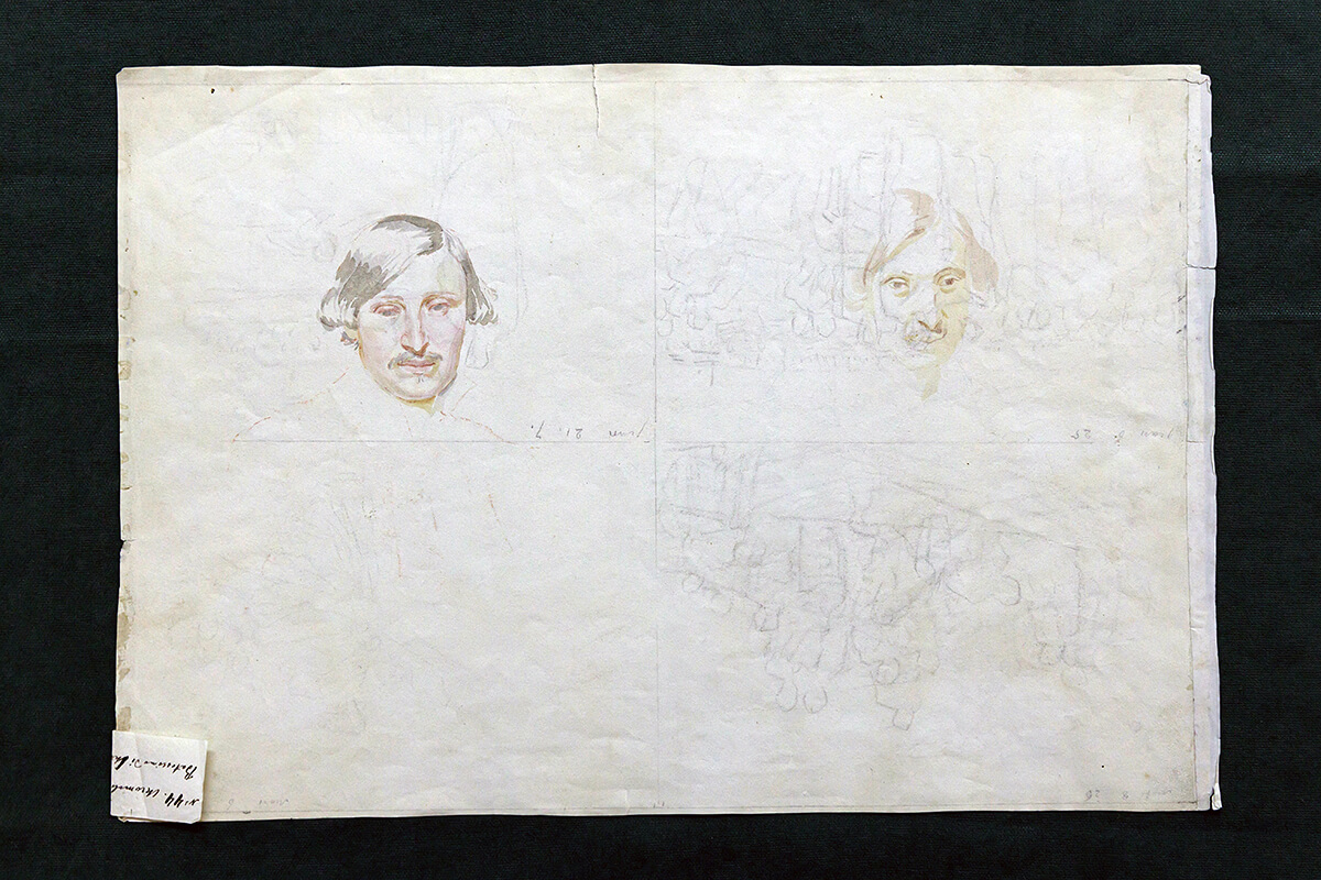 Можно отметить шестнадцать отдельных листов с рисунками на различные, не связанные между собой сюжеты. Среди них — лист с двумя набросками акварелью портрета Николая Васильевича Гоголя, соседствующими с карандашными рисунками на библейские темы, на обороте листа — акварель «Крещение Христа» (к. 2, ед. 47), один из оставшихся в архиве библейских эскизов Александра Иванова, переданных после преобразования Московского публичного и Румянцевского музеев
