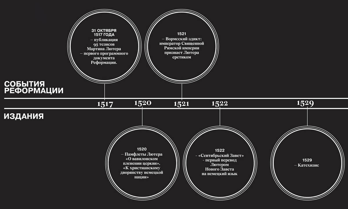 С первых шагов Реформации печатный пресс играет важнейшую роль во всех её событиях. 95 тезисов Лютера, направленные против индульгенций и обнародованные 31 октября 1517 года в Виттенберге, не были чем-то исключительным — это была обычная практика приглашения к академическому диспуту.