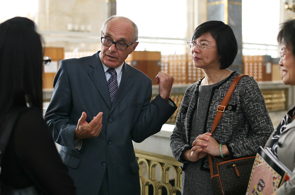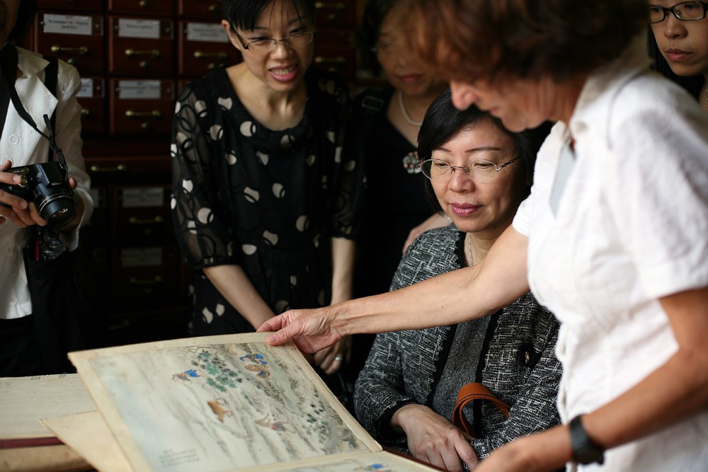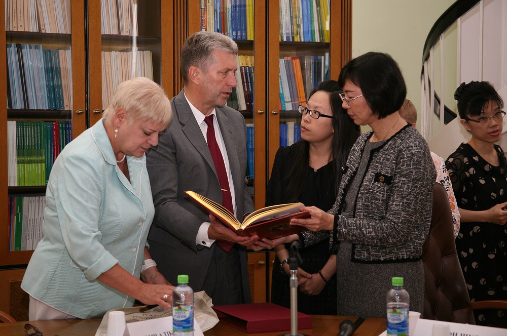 Президент РГБ Виктор Федоров, заместитель генерального директора Людмила Тихонова и заведующий Центром восточной литературы Сергей Кукушкин провели гостей по читальным залам Центра восточной литературы и отдела рукописей. И познакомили их с изданиями из коллекции видного русского синолога и дипломата Константина Скачкова (1821–1883), собравшего богатейшую коллекцию китайских и маньчжурских книг. В нее входят средневековые рукописи, планы городов и карты, альбомы с портретами прославленных деятелей Китая и рисунками, изображающими старинный быт. Цэн Щюсян и ее коллеги были поражены богатством коллекции.