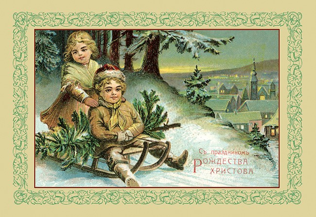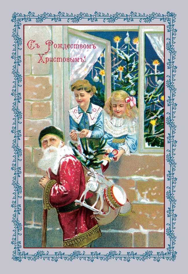 Одна из первых поздравительных открыток в России была выпущена к Пасхе 1897 года, и незамедлительно рынок наполнился самой разнообразной продукцией с сотнями сюжетов к Рождеству, Новому году, Пасхе и Дню ангела. Несмотря на оригинальное исполнение и многообразие русских открыток, существенная их часть печаталась за рубежом и импортировалась в Россию. Многие европейские открытки издавались на заказ с подписями на русском языке тиражами в несколько раз большими, чем у себя на родине. Незатейливые деревенские сцены и образы крестьян, храмы, зимние пейзажи, торжественно накрытые к празднику столы — кажется, сюжеты почти не меняются со временем. Из Европы поставлялись к распространению открытки и с менее привычными изображениями: ангелами, кроликами, ряжеными свинками, мухоморами, пуансетией и трилистниками, той атрибутикой и символикой, которая, кажется, уже прочно вошла в нашу жизнь. Стоимость открытки — 20 рублей. 01.12.2014