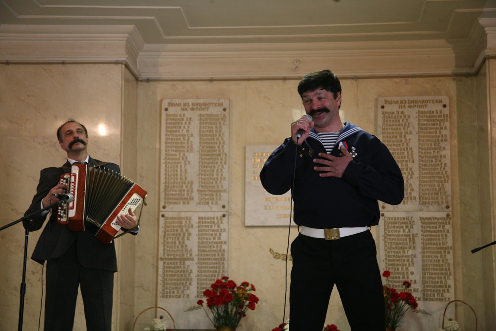 Уже шестнадцатый год в преддверии 9 Мая торжественное мероприятие проходит у мемориальной доски РГБ. 175 сотрудников Ленинки ушли на фронт, многие из них не вернулись. Ни на один день библиотека не закрывала в войну двери читальных залов. Причем те, кто работал в ГБЛ, трудились еще и на строительстве оборонительных рубежей вокруг Москвы, лесозаготовках, торфоразработках, в подшефном госпитале.