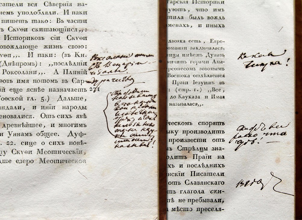 По мнению академика, о принадлежности книги библиотеке Чаадаева свидетельствуют две надписи в начале книги. «На начальных страницах есть несколько маргиналий, написанных, как и надписи владельца книги, рукой Чаадаева, — насколько я мог установить, его почерком, засвидетельствованным в первый период жизни до 1831 года, следовательно, вероятна принадлежность книги первой библиотеке Чаадаева», — рассказал академик. Книга принадлежала отцу Вячеслава Иванова, российскому и советскому писателю Всеволоду Вячеславовичу Иванову, который в 1920-е годы собрал большую библиотеку редких старинных книг. «К сожалению, большая часть библиотеки погибла в Переделкине, когда сгорела дача отца, — рассказал Вячеслав Всеволодович. — Он много занимался в тридцатые годы русской религиозной философией. Случайным образом эта книга пережила все невзгоды. Чааадаев ее начал читать, ему не понравилось то, о чем писал Раич, особенно попытка вывести славян из скифов — очень популярная в начале ХХ века теория. Интересны замечания Чаадаева по этому поводу в нескольких местах книги». Вячеслав Иванов сказал, что долгие годы был читателем РГБ и высоко ценит исследования, которые здесь проводились с книгами Чаадаева, в частности выявление и описание книг философа, вышедших в «Каталоге библиотеки П. Я. Чаадаева» ( М. : ГБЛ, 1980 ) и ( М. : Пашков дом, 2000 ). Поэтому он решил передать книгу в дар Российской государственной библиотеке. «Я думаю, что эта книга поможет продолжить разыскания, касающиеся библиотеки философа. И я хотел, чтобы мой дар был известен публично, потому что мне кажется, что библиотеки сейчас нуждаются в поддержке», — подчеркнул Вячеслав Иванов.