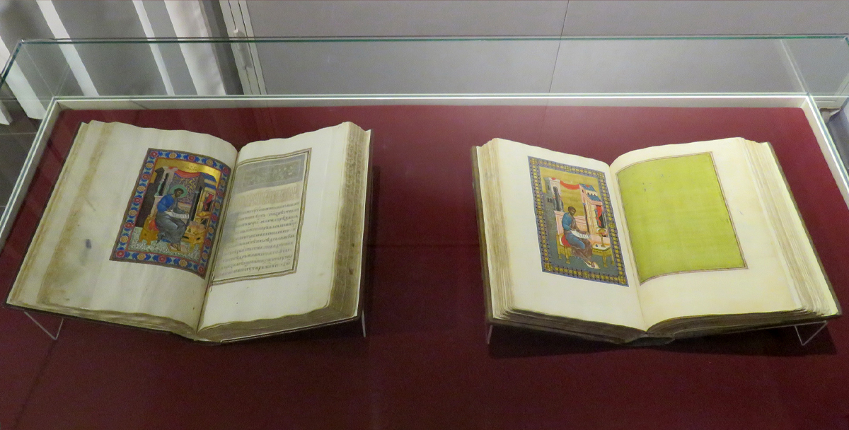 Российская государственная библиотека предоставила два ценных издания для выставки: копию Указа императрицы Елизаветы Петровны из Святейшего Синода от 22 июня 1744 года архимандриту Троицкого монастыря Арсению (Могилянскому) о наименовании монастыря Лаврой и Евангелие Исаака Бирева 1531 года.