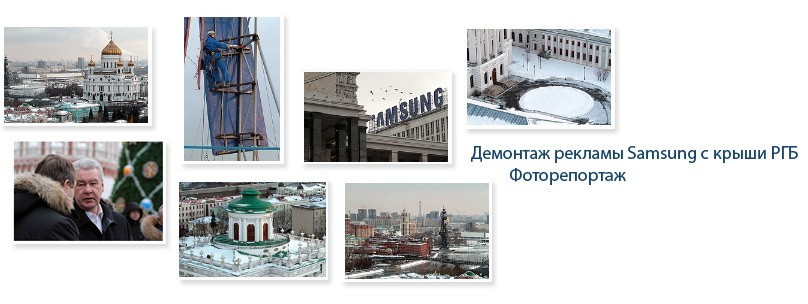 «В городе было выявлено порядка тридцати тысяч рекламных конструкций, которые закрывали фасады домов, — рассказал мэр Москвы Сергей Собянин. — С этого года мы приступаем к новому этапу по наведению порядка в области рекламы, которой все еще достаточно много в нашем городе. В конце 2012 года мы приняли новые правила размещения городской рекламы, которые значительно ограничивают ряд форматов, особенно в центре города, и сегодня мы снимаем одну из самых больших крышных конструкций, рекламу „Самсунг“, и в дальнейшем будем убирать сооружения, срок договоров на размещение которых истек и которые не соответствуют новым правилам. Я думаю, что город будет светлее и просторнее от этой работы».
