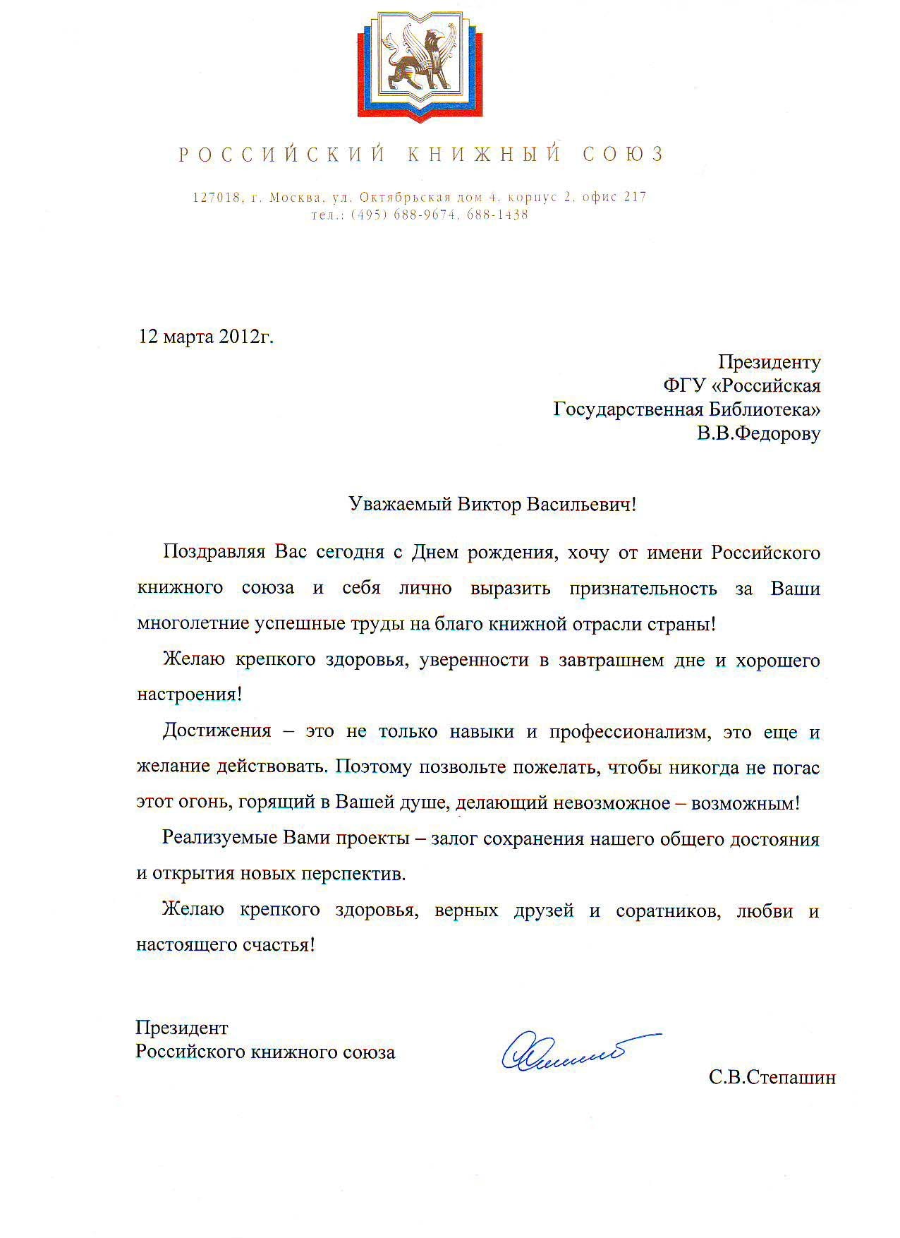 В день шестидесятипятилетия Виктора Васильевича поздравил личной телеграммой Президент РФ Дмитрий Медведев. «Более десяти лет Вы были директором Российской государственной библиотеки. Во многом благодаря Вашему профессионализму и энергии это крупнейшее национальное книжное хранилище стало авторитетным научно-образовательным, просветительским и методическим центром страны. Сегодня на посту Президента РГБ Вы многое делаете для сохранения отечественного исторического наследия, популяризации русского языка и культуры за рубежом. Желаю Вам крепкого здоровья, успехов и всего самого доброго» — написано в обращении.