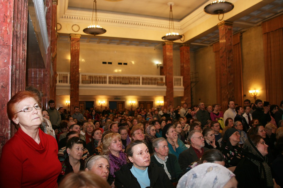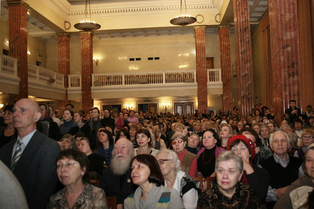 Вечер был организован Российской государственной библиотекой, Международным фондом славянской письменности и культуры и Московским дворянским собранием. Открывая встречу, главный научный сотрудник отдела книговедения РГБ Татьяна Миронова отметила, сколь велик интерес к духовной сфере в сегодняшнем мире. До предела заполненный конференц-зал — зримое тому свидетельство.