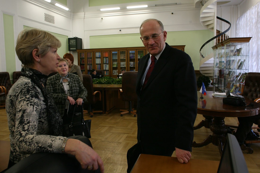 Господин Чикваидзе с большим интересом познакомился с работой Центра и в беседе с исполнительным директором РГБ Владимиром Гнездиловым сказал, что надеется на дальнейшее сотрудничество и проведение совместных проектов в будущем.
