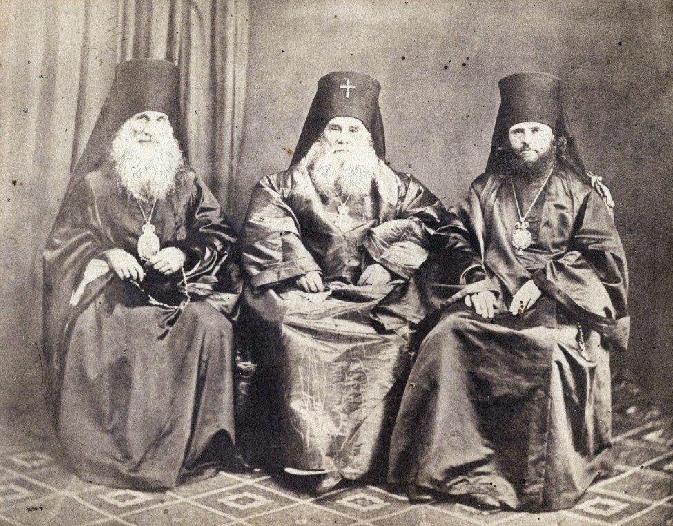 Слева направо: Архиепископ Иркутский Парфений (Попов), митрополит Московский и Коломенский