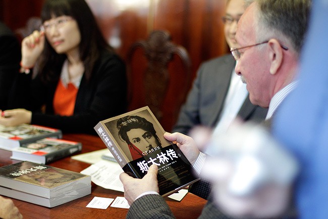 В Центре восточной литературы есть специализированный зал для чтения на китайском, в библиотеке проходят мероприятия, связанные с китайским языком и культурой. Поэтому выбор РГБ как места для обмена книгами на китайском и о Китае был не случаен. «Для развития российско-китайских отношений выход этой книги — важное событие, — рассказал о переводе книги Святослава Рыбаса "Сталин. Судьба и стратегия" президент РГБ Виктор Васильевич Федоров. — Фигура Сталина на данном этапе развития нашего общества является достаточно спорной, но достижения советского государства в период его жизни несомненны». Виктор Федоров высоко оценил книгу Святослава Рыбаса, подчеркнув, что ее достоинства признаются даже самыми строгими критиками личности Сталина. «Мы учимся у Китая, где умеют преподносить события своей истории как неразрывную нить», — подчеркнул Виктор Васильевич. В «Молодой гвардии» не раз выходили книги, связанные с Китаем. На встрече в РГБ гостям из китайского посольства преподнесли в дар несколько изданий из серии «Жизнь замечательных людей»: биографии Мао Цзэдуна, Конфуция, Дэн Сяопина. Генеральный директор издательства «Молодая гвардия» Валентин Федорович Юркин отметил, что очень ценит отношения с китайскими коллегами.
