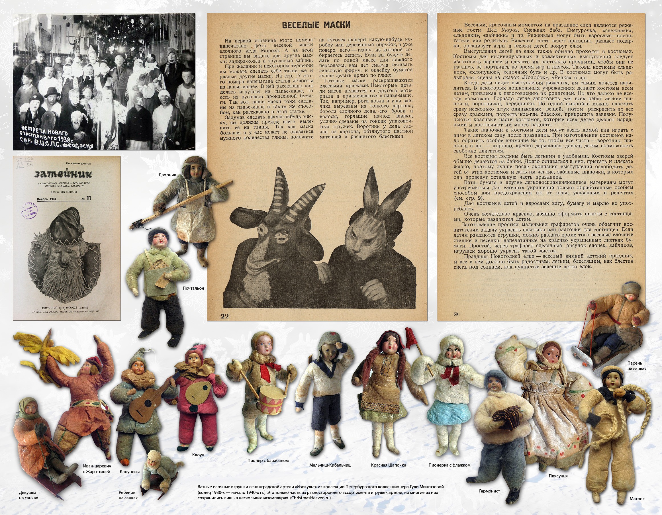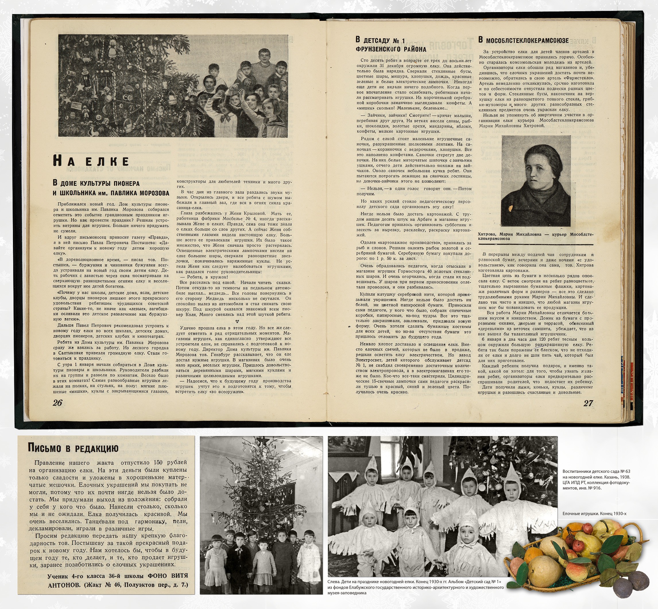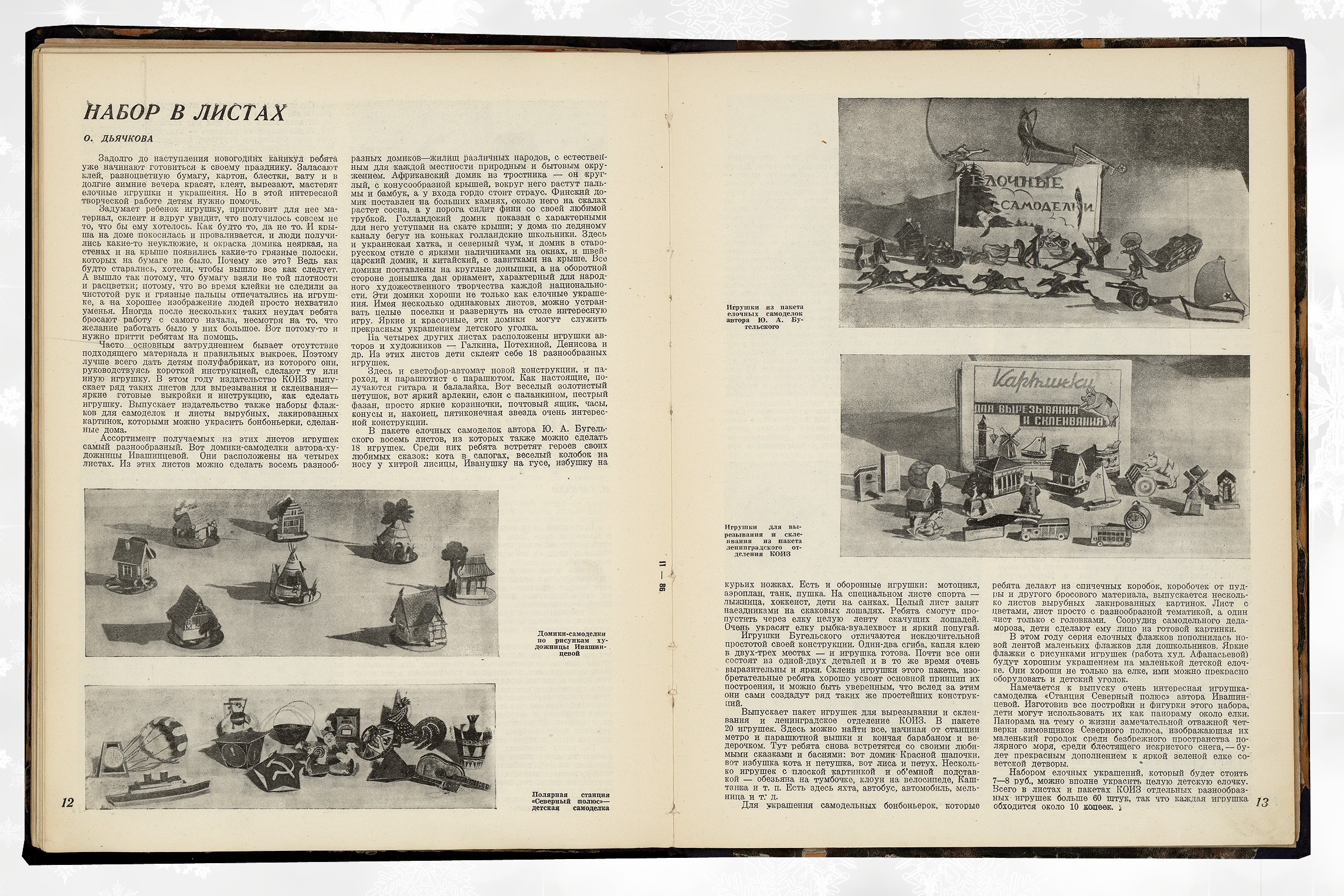 Уже в 1936 году полным ходом шло настоящее коммунистическое ёлочное строительство. Был создан Наркомпрос комитет по игрушке, который в том же году выпустил серьёзный сборник статей «Ёлка». «Ёлки 1935 и 1936 года различны, — анализирует автор статьи "Ёлка в детском саду". — В 1935 году ёлка была устроена почти экспромтом... Организация ёлки в 1936 году заранее обсуждалась, были учтены ошибки проведения ёлки 1935 года. На совещании в Наркомпросе были поставлены и обсуждены вопросы: значение ёлки для ребят; нужно ли делать ёлку сюрпризом для детей или они должны знать об её организации; по окончании праздника убирать ли ёлку или оставлять...» Новогодние выпуски всех журналов не обошлись без изображения зелёного мохнатого дерева на обложке. Декабрьский номер журнала «Мурзилка» за 1937 год открывается историей о том, как Мурзилка озаботился отсутствием ёлки у полярников Папанина и Кренкеля на Северном полюсе. «Я изобрёл прессованную ёлку, ёлку-консервы, — ликует он. — Её надо воткнуть в снег, полить — и через пять минут вырастает новогодняя ёлка со всеми украшениями, свечами и музыкой». Стали издаваться специализированные издания, посвящённые исключительно игрушкам и ёлочным украшениям. В 1936 году вышел первый номер журнала «Советская игрушка» (с 1937 года — «Игрушка»), который со всей серьёзностью освещал вопросы новогоднего игрушечного производства и торговли. И если в 1936 году он рассказывал в основном о драматических случаях превышения спроса над предложением («Нужно немедленно организовать производство ёлочных игрушек, чтобы в будущем году ёлка не застала нас врасплох»), то в 1939 году здесь уже пишут, что «планы продажи ёлочных украшений перевыполнены», а подготовка к игрушечной торговле начинается уже в августе. Не обходится и без критики: «Имея все возможности к расширению ассортимента и улучшению качества стеклянных ёлочных украшений, Жилинская фабрика и завод "Лаборприбор" успокоились на успехах позапрошлого года».