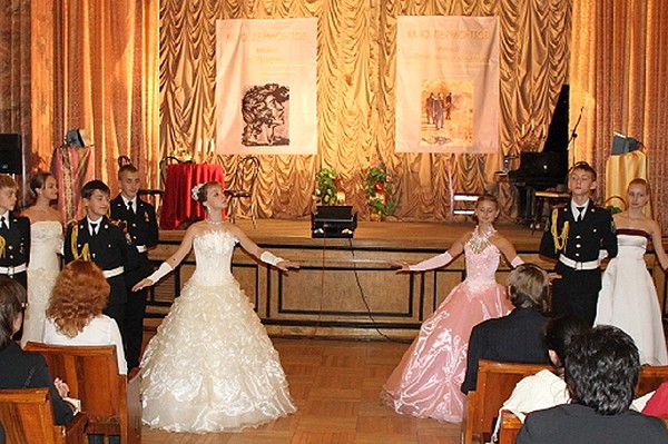 Звучали бессмертный вальс из «Маскарада» Арама Хачатуряна и романсы на стихи поэта. Авторам даже оказалось под силу перенести зрителей в бальную залу: девочки в белоснежных платьях и подтянутые кадеты старательно исполняли давно канувшие в Лету танцы.