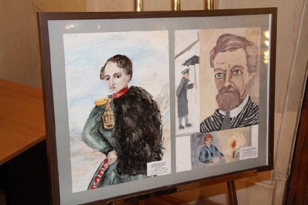 Не осталась в стороне и живопись. На экране демонстрировались портреты классика и жанровые картины, передающие колорит его времени. Хорошим обрамлением послужила выставка детских художественных работ.