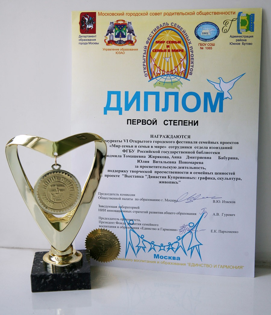 Темой проекта и презентации, подготовленных сотрудниками отдела изоизданий РГБ Людмилой Жиряковой, Анной Бабуриной и Юлией Пономаревой, стала проходящая сейчас в читальном зале ИЗО РГБ выставка «Династия Купреяновых: графика, скульптура, живопись» . Одна из официально озвученных целей фестиваля: повышение престижа и роли семьи в обществе и укрепление семейных отношений и межпоколенческих связей. Все это имеет прямое отношение к выставке, которая посвящена творческим и духовным связям целых трех поколений семьи художников Купреяновых.
