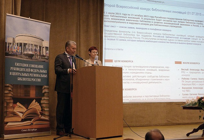 20 октября 2015 года в рамках ежегодного совещания директоров федеральных и региональных библиотек РФ в Санкт-Петербурге были объявлены победители Второго Всероссийского конкурса библиотечных инноваций . Всего к участию в конкурсе было принято 166 заявок от библиотек разных типов и видов: публичных (от национальной до сельской), академических, специальных, вузовских и школьных. Участники представляли все регионы России от Архангельска до Владивостока, а также Республику Беларусь.