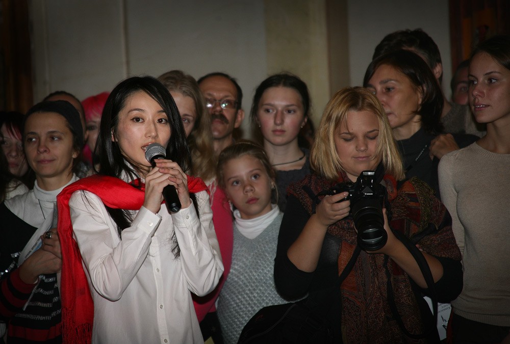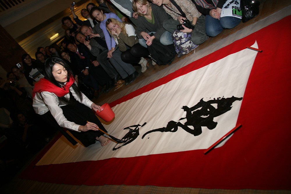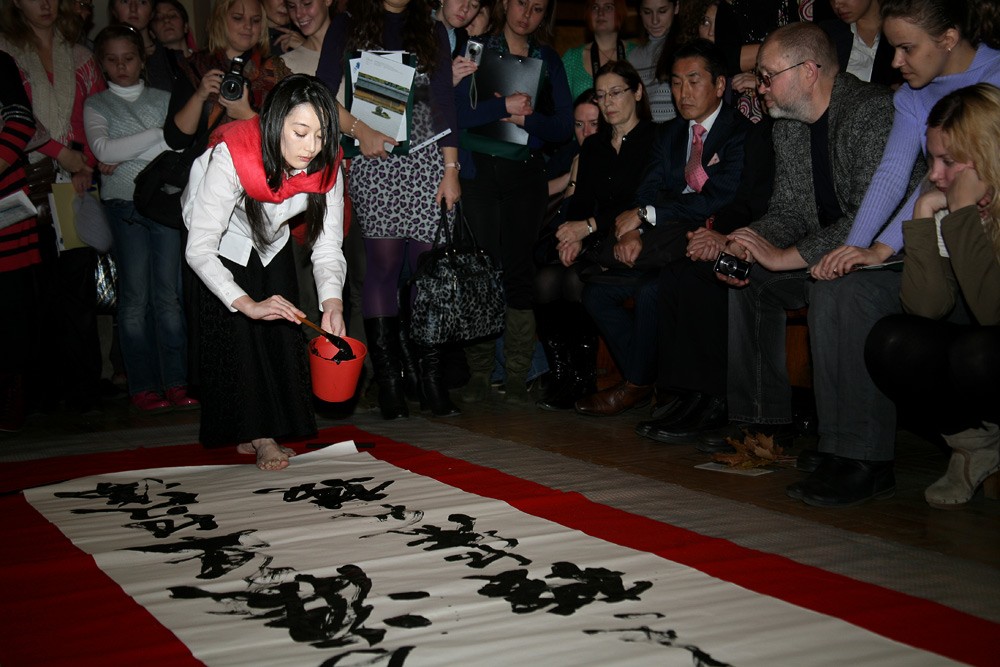 Конкурс завершился мастер-классом каллиграфии художницы Марико Киноситы . На глазах большого числа зрителей она украсила огромный лист бумаги витиеватой и по смыслу, и по исполнению фразой: «Высохшие, было, слезы снова катились по дорогому мне лицу». Цитата из рассказа японского писателя и переводчика Мори Огая «Танцовщица».