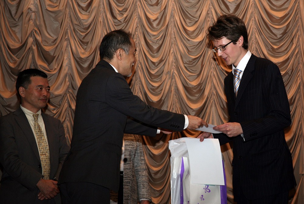 Все участники конкурса получили подарки, а призовыми местами были отмечены шестеро. Обладатель первого места поедет в Японию на стажировку. Победу студента Рязанского государственного университета Антона Карякина можно было спрогнозировать еще до объявления результатов. Так вдохновенно, чуть выйдя за рамки регламента, он говорил. Пространно отвечал на вопросы и вызывал своими ответами живую реакцию зала. Тем более что поднятая им тема всегда актуальна. В эссе «Различия» он сделал отважную попытку сравнить менталитеты наших народов.