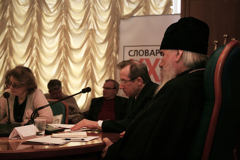 Так­же на круг­лом сто­ле с до­кла­да­ми вы­сту­пи­ли: Ва­ле­рий Ка­пу­стин, ис­пол­ни­тель­ный ди­рек­тор Ас­со­ци­а­ции Не­го­су­дар­ствен­ных ВУЗов Рос­сии; Мар­га­ри­та Чер­ны­ше­ва, ве­ду­щий на­уч­ный со­труд­ник Ин­сти­ту­та рус­ско­го язы­ка им. В. В. Ви­но­гра­до­ва РАН; Люд­ми­ла Мед­ве­де­ва, за­ве­ду­ю­щая от­де­ле­ни­ем бо­го­слу­жеб­ных книг Из­да­тель­ства Мос­ков­ской Пат­ри­ар­хии; Та­тья­на Ис­а­чен­ко, ве­ду­щий на­уч­ный со­труд­ник РГБ; Ан­на Да­ни­ло­ва, глав­ный ре­дак­тор пор­та­ла «Пра­во­сла­вие и мир»; Та­тья­на Ми­ро­но­ва, глав­ный на­уч­ный со­труд­ник РГБ.