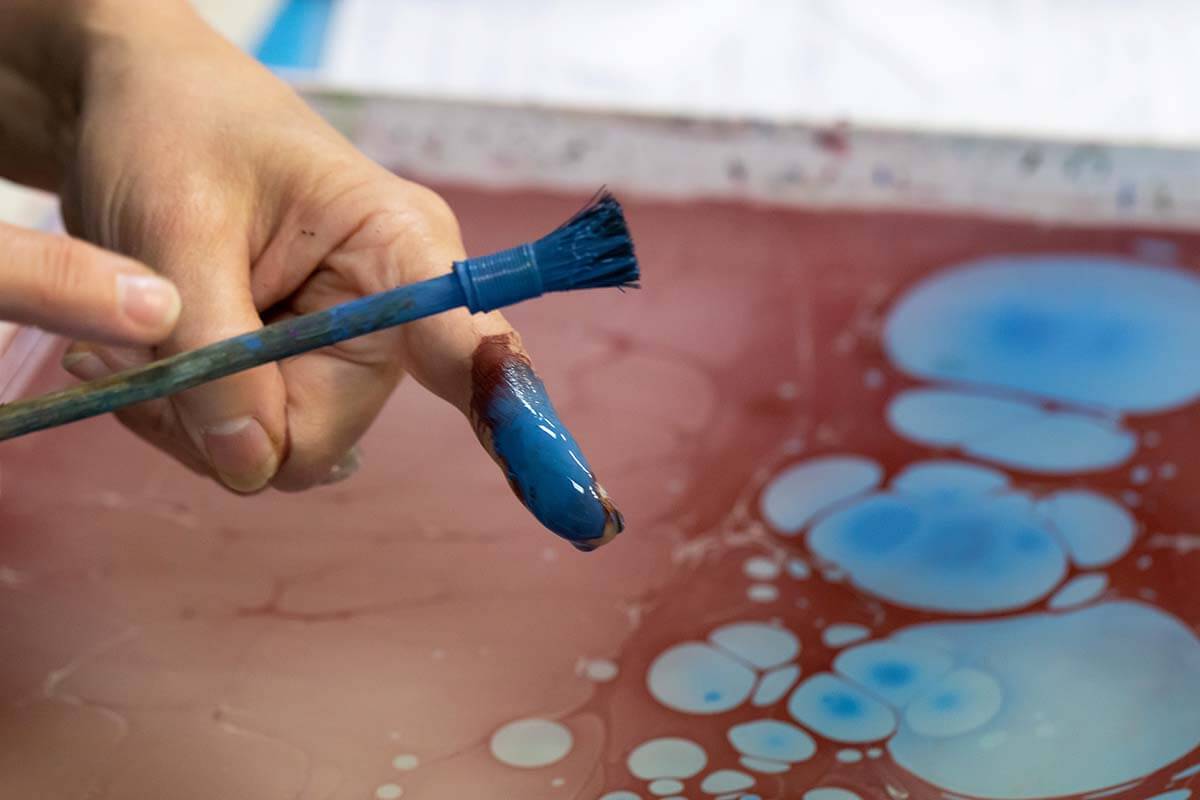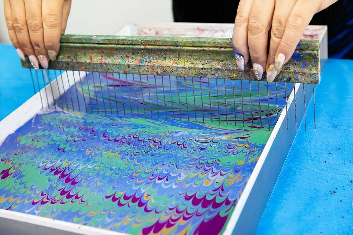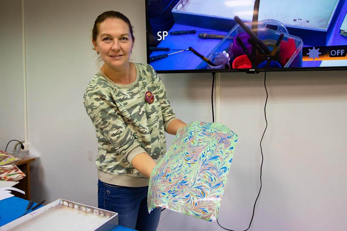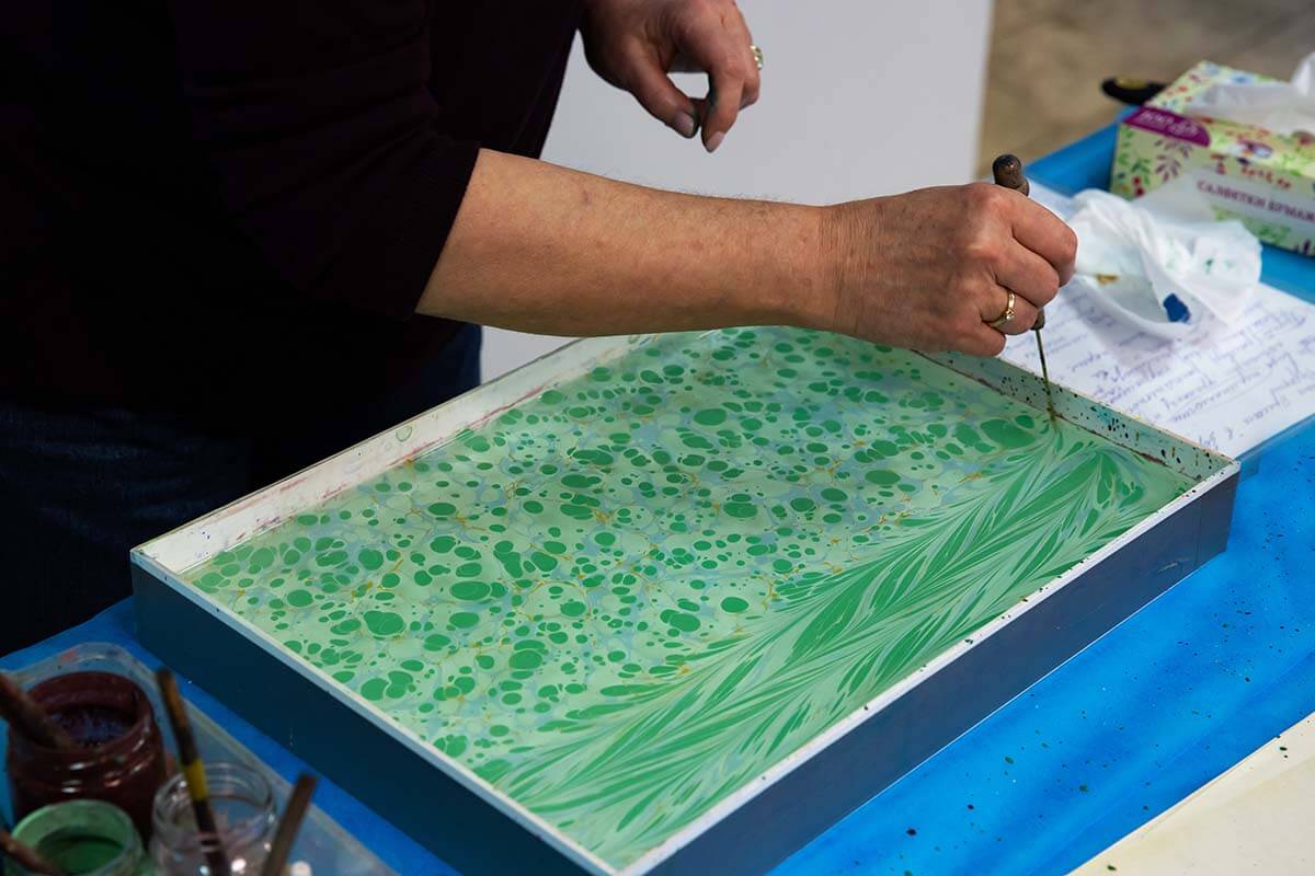 В программу обучения входили также мастер-классы. Большой интерес у слушателей вызвал мастер-класс по изготовлению мраморной бумаги, который провела Елена Белозёрова.