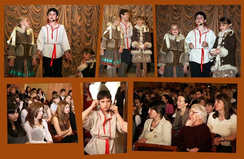 Тема крестьянского быта была раскрыта «Песней о криницах» в исполнении фольклорного ансамбля гимназии и стихотворением «Бабушкины сказки». Лауреаты международного музыкального конкурса Ирина и Майя Кацман исполнили романс «Над окошком месяц...».