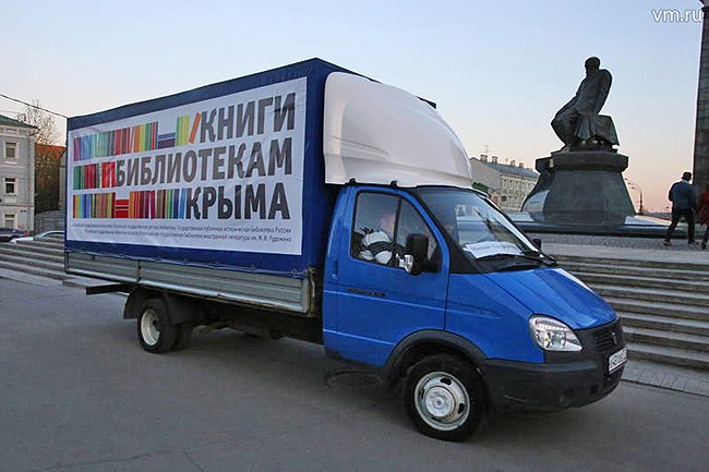 Кро­ме РГБ, кни­ги для Кры­ма предо­ста­ви­ли Рос­сий­ская го­су­дар­ствен­ная дет­ская биб­лио­те­ка, Го­су­дар­ствен­ная пуб­лич­ная ис­то­ри­че­ская биб­лио­те­ка, Рос­сий­ская го­су­дар­ствен­ная биб­лио­те­ка ис­кусств и Всероссийская государственная биб­лио­те­ка ино­стран­ной ли­те­ра­ту­ры им. М. И. Ру­до­ми­но. По сло­вам ге­не­раль­но­го ди­рек­то­ра РГБ Алек­сандра Вис­ло­го, книж­ная по­мощь Кры­му не огра­ни­чит­ся од­ной ма­ши­ной — со­всем ско­ро бу­дет выслана еще од­на пар­тия ли­те­ра­ту­ры, на этот раз в Се­ва­сто­поль.