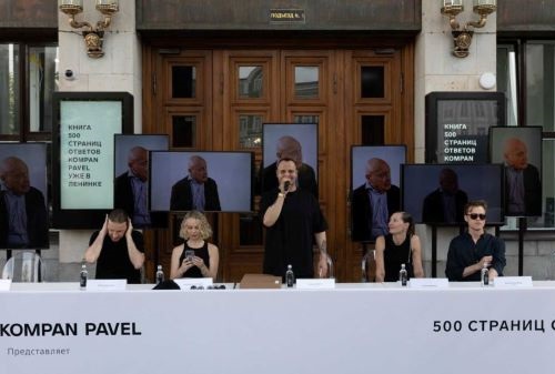 Под 20-метровыми колоннами у первого подъезда РГБ 4 июля прошла презентация интерьерной книги Павла Компана «500 страниц ответов». Участниками вечера стали Алексей Колпаков, Алена Моисеева, Марина Рой, Антон Бельтюков, Наталья Осман, Даниил Добрунов, Снежана Георгиева, Игорь Цвирко и Андрей Фомин.