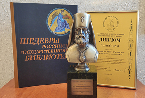 В Издательском совете Русской православной церкви 31 октября состоялось награждение лауреатов XIX открытого конкурса изданий «Просвещение через книгу», главный приз которого был присуждён книге «Шедевры Российской государственной библиотеки», выпущенной издательством «Пашков дом» РГБ.