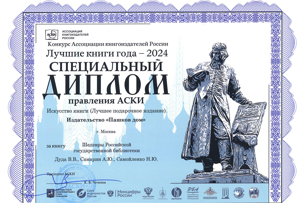 Среди лучших российских издательств, учебных заведений, библиотек, музеев, отмеченных в 12 номинациях, и книги издательства РГБ «Пашков дом».