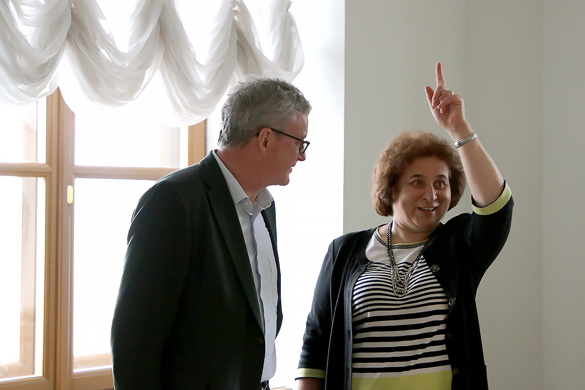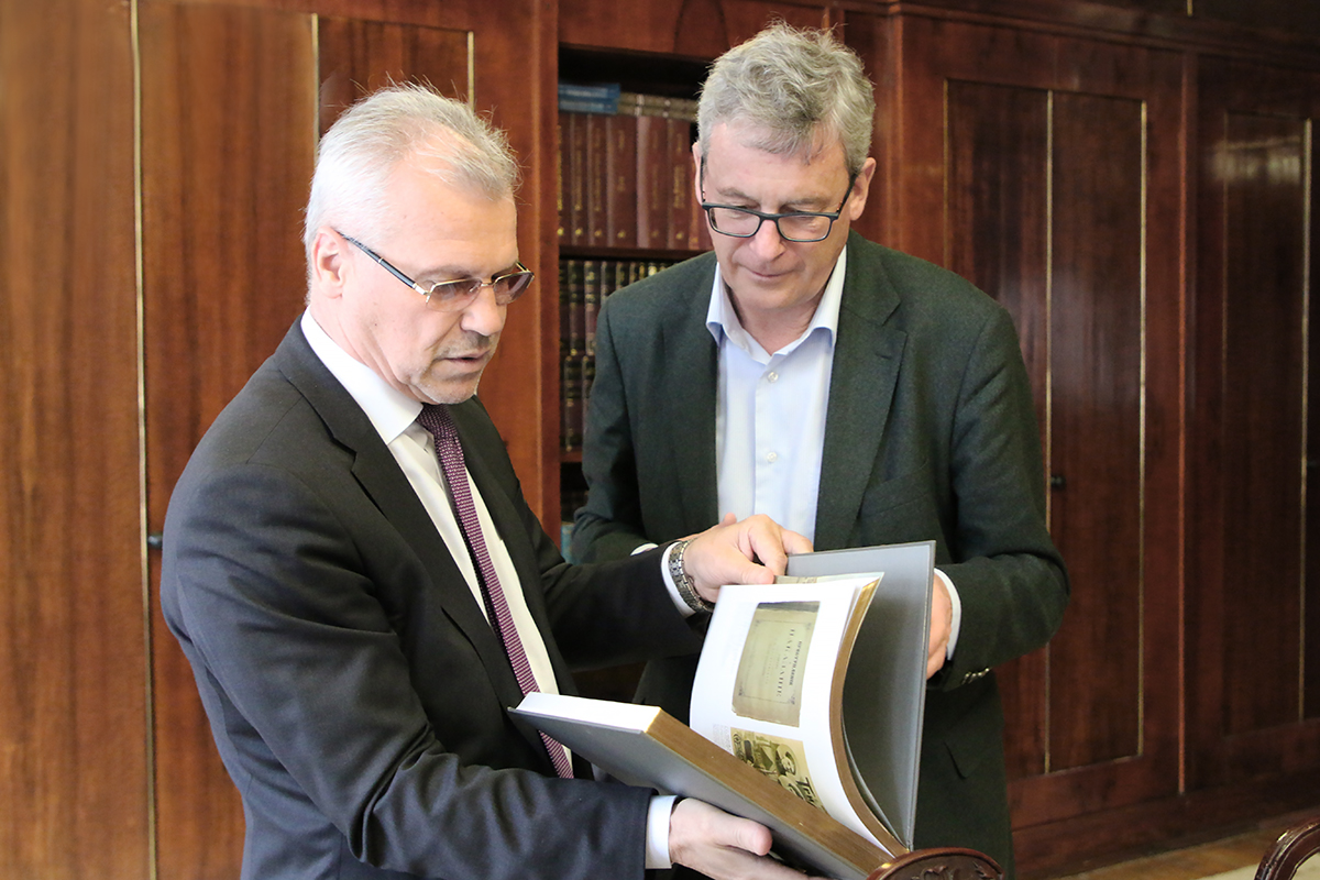 Владимир Иванович Гнездилов, исполняющий обязанности генерального директора РГБ, и доктор Йоханнес Айгнер обменялись дарами. Обе стороны выразили заинтересованность во взаимном сотрудничестве, обмене опытом и укреплении культурных связей.