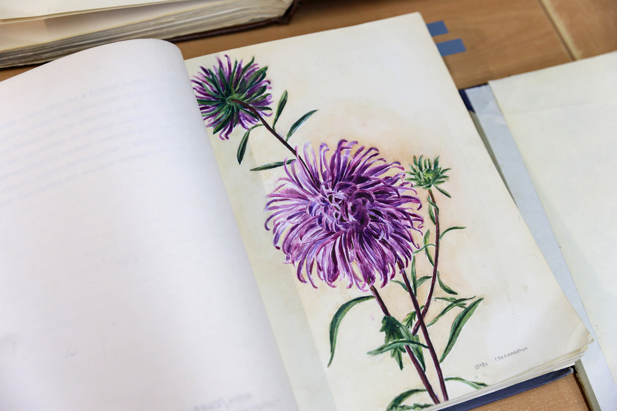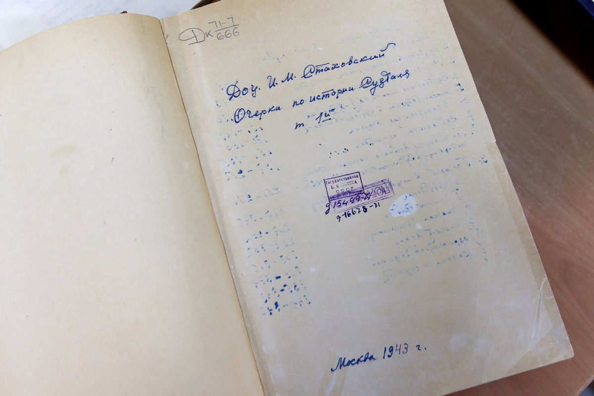 Рядом — работа доктора исторических наук Льва Гумилёва, начатая до ссылки, а законченная уже после её окончания. Диссертация известного селекционера, академика Аймака Джангалиева в своём роде уникальна: к ней приложены акварельные рисунки.