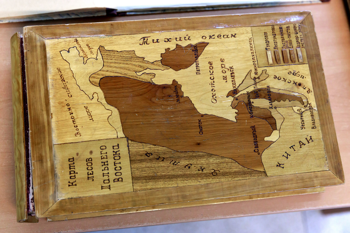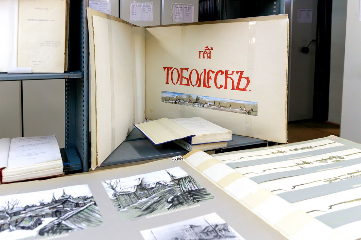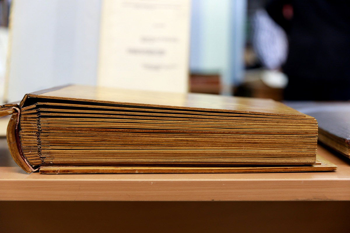 Гости Библиодня полюбовались деревянной диссертацией. Познакомились с кандидатским исследованием Владимира Кириллова, посвящённым градостроительству Тобольска — оно содержит три тома приложений размером с письменный стол.