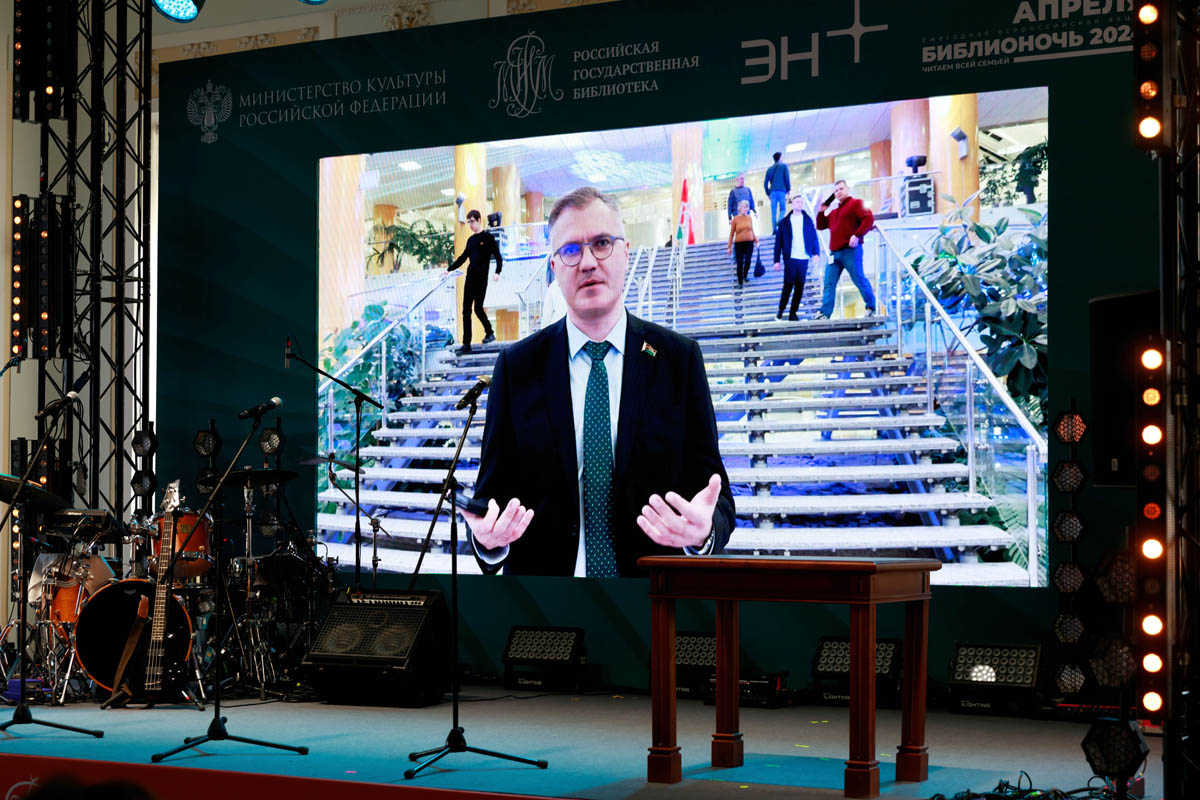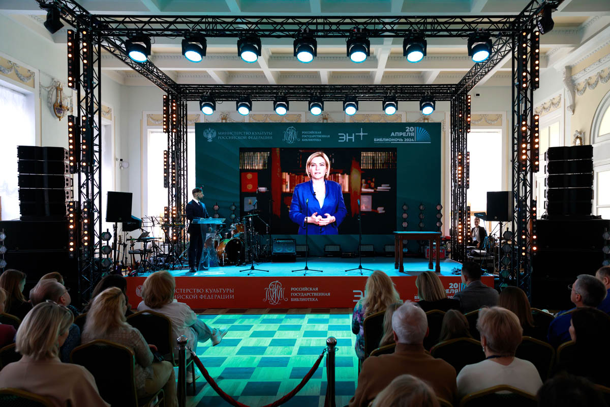 Гостей и участников вечера поздравила министр культуры Российской Федерации Ольга Любимова, подчеркнув общественную и профессиональную ценность акции в популяризации практик семейного чтения и необходимости культурной сплочённости.