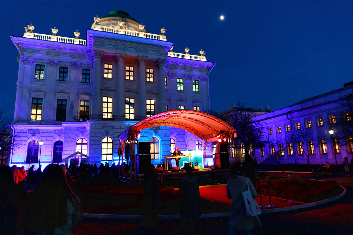 «Каждая „Библионочь“ — особенная. Мы ищем новые формы, новые идеи. И в этом году мы решили поменять основную площадку — это не Третий читальный зал, не Мраморная лестница, всем давно знакомая и привычная. Теперь это Румянцевский зал, Бальный зал Дома Пашкова. Я думаю, что эта обстановка очень соответствует духу семейного чтения, семейным беседам о замечательных книгах», — отметил генеральный директор РГБ Вадим Дуда.