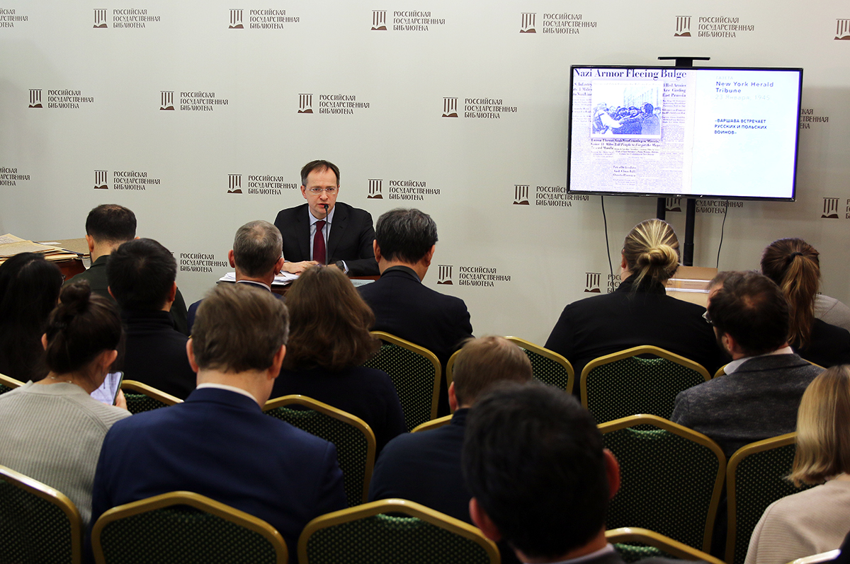 31 января в Доме Пашкова состоялась встреча с журналистами помощника президента России Владимира Мединского. Основным вопросом стало сохранение правдивых сведений о событиях Второй мировой и Великой Отечественной войны.