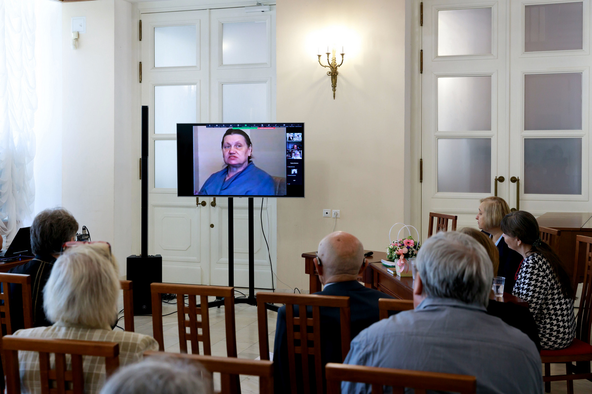 Василий Калугин, доктор филологических наук, профессор, ведущий научный сотрудник Института русского языка имени В. В. Виноградова Российской академии наук, выступает с докладом «Отношение восточнославянских списков Толковых пророчеств к среднеболгарским»