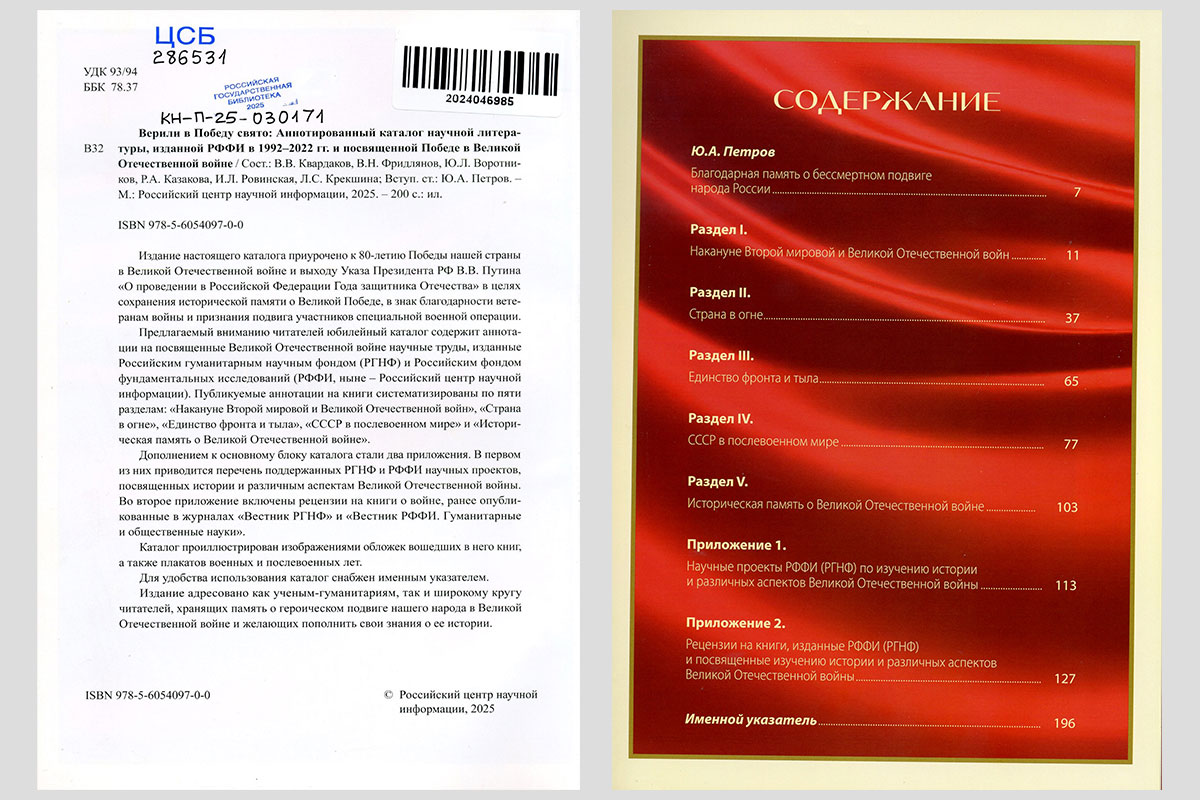 Верили в Победу свято : аннотированный каталог научной литературы, изданной РФФИ
