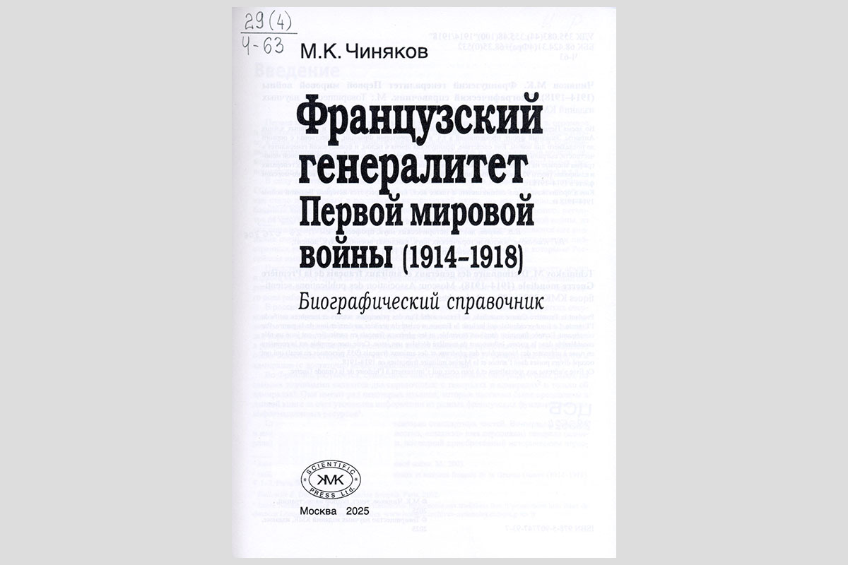 Чиняков, Максим Константинович. Французский генералитет Первой мировой войны