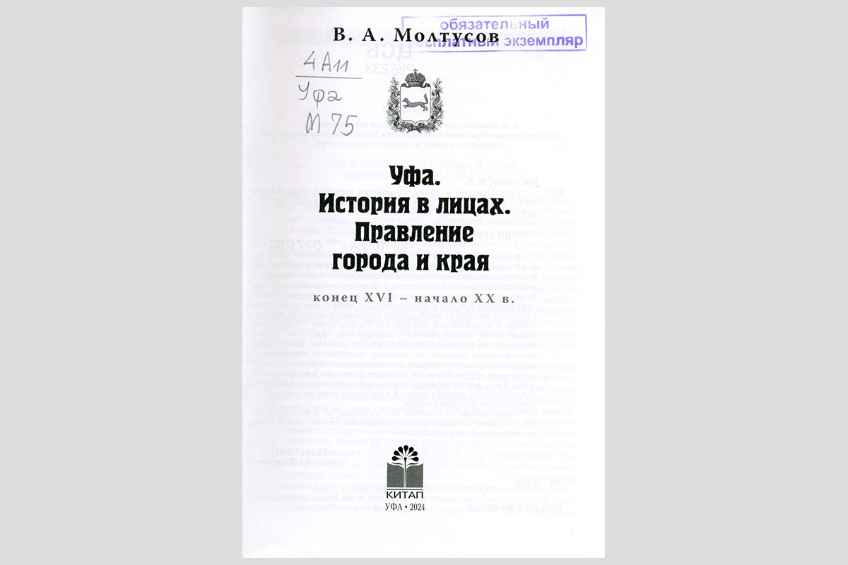Молтусов, Валерий Алексеевич. Уфа. История в лицах. Правление города и края, конец XVI — начало XX века. Уфа, 2024