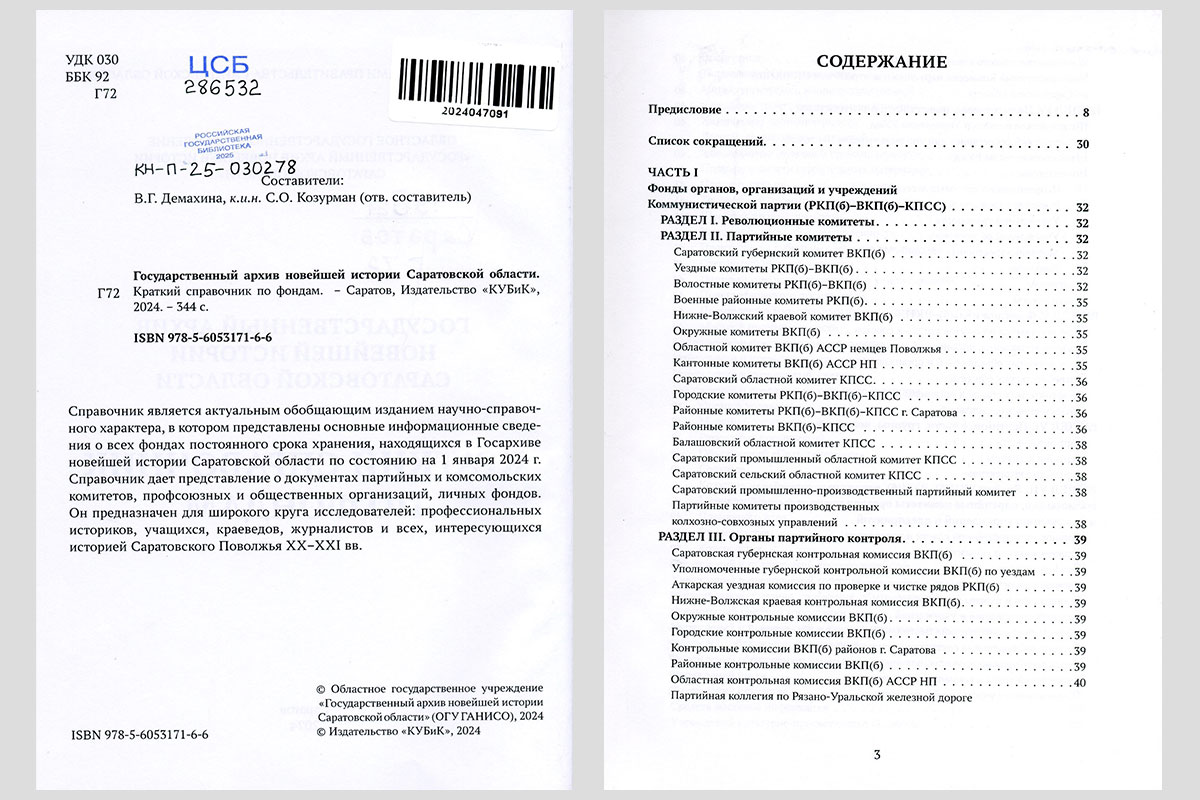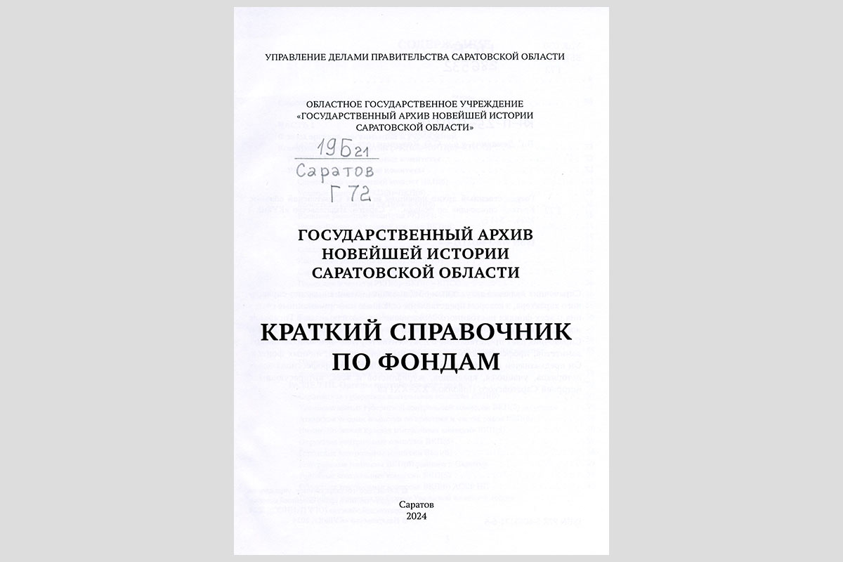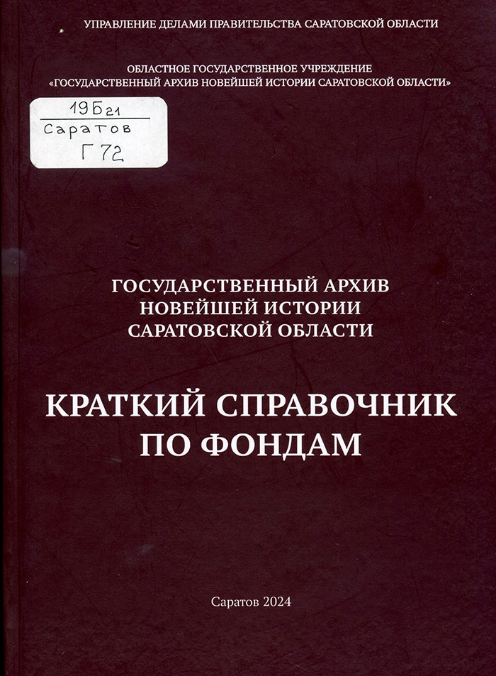 Государственный архив новейшей истории Саратовской области : краткий справочник по фондам. Саратов, 2024