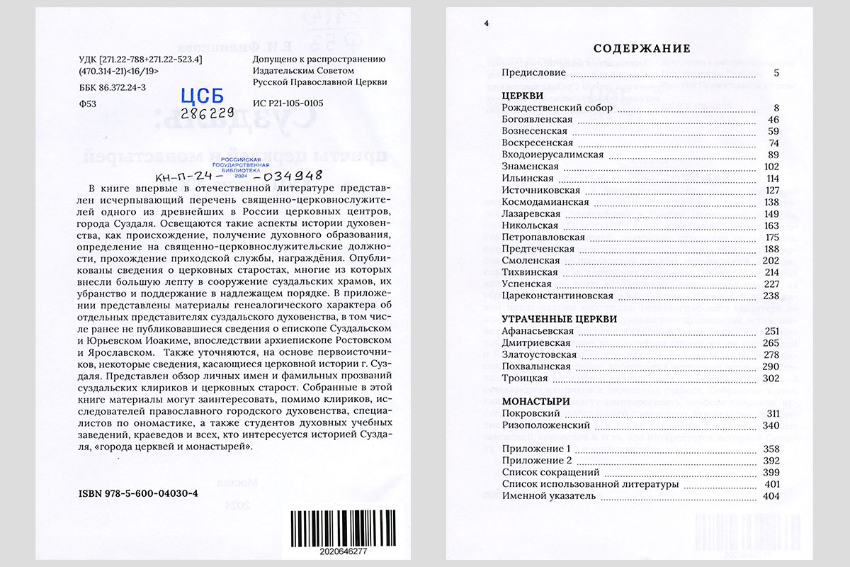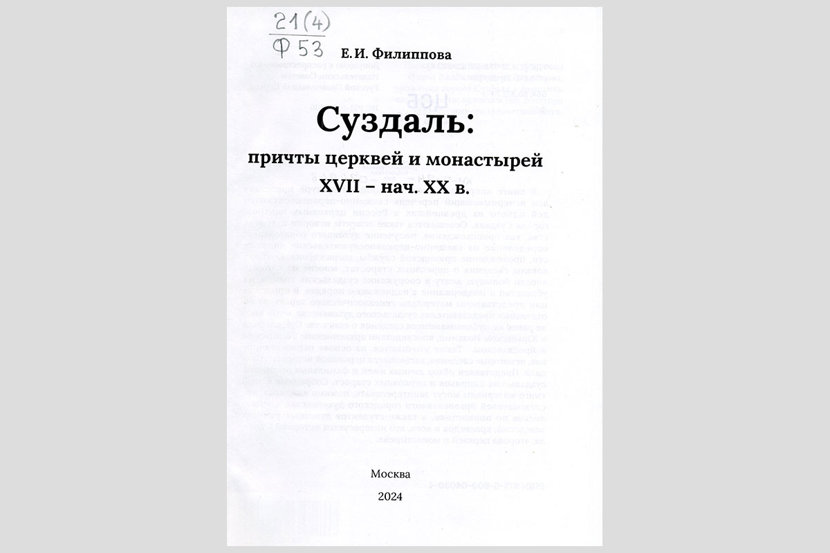 Филиппова, Елена Ивановна. Суздаль: причты церквей и монастырей, XVII — начало XX века. Москва, 2024