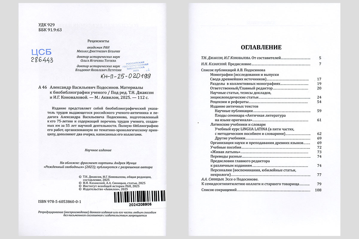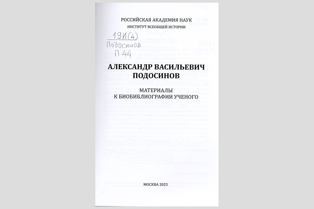 Александр Васильевич Подосинов : материалы к биобиблиографии учёного. Москва, 2025