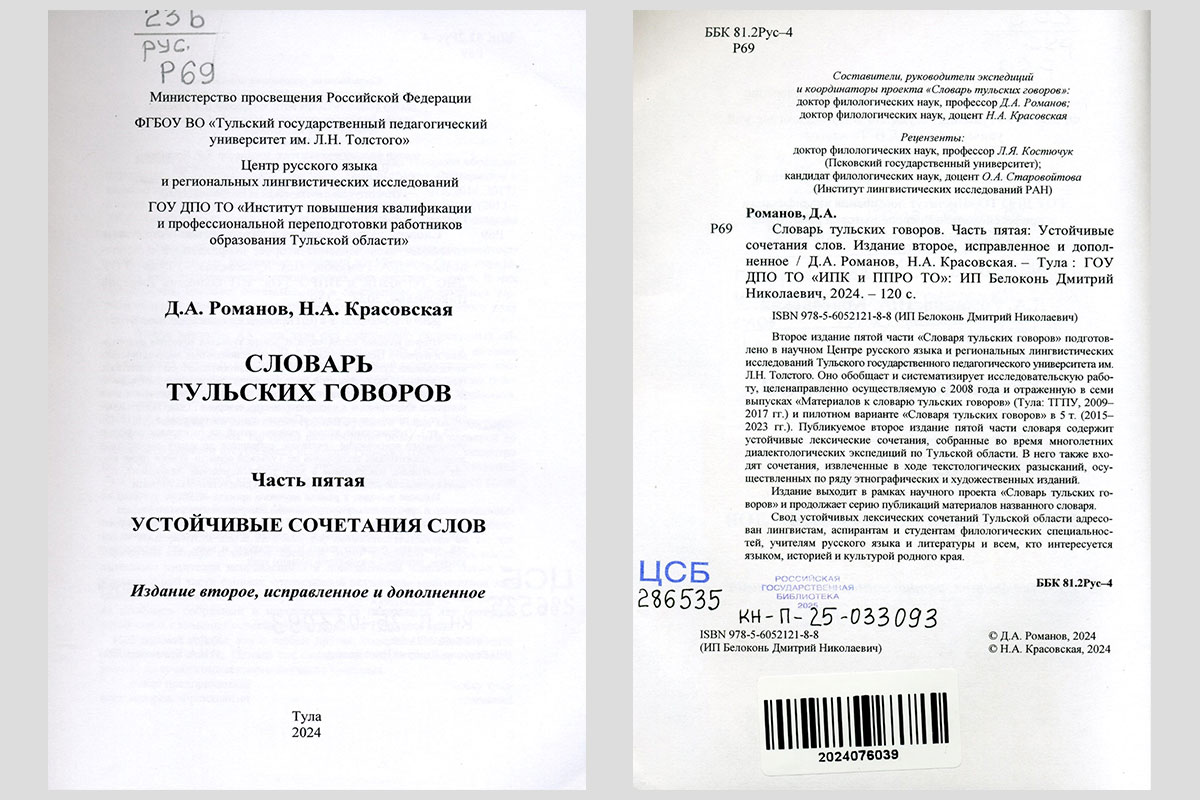 Романов, Дмитрий Анатольевич. Словарь тульских говоров. Часть 5 : Устойчивые сочетания слов. Тула, 2024