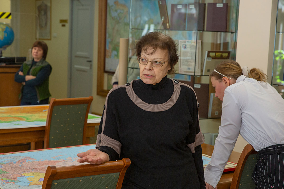 Заведующая отделом картографических изданий РГБ Людмила Зинчук поблагодарила Александра Игонина и подчеркнула значимость подаренных документов для Ленинки: «Традиционно в национальный фонд картографической библиотеки картографы, учёные, исследователи дарят нам свои труды. Сегодня нам доставлено сорок три картографических произведения, обратите внимание на разнообразие этих документов: есть рельефные карты Приволжского округа, есть новые карты Московской области, замечательная историческая карта СССР».