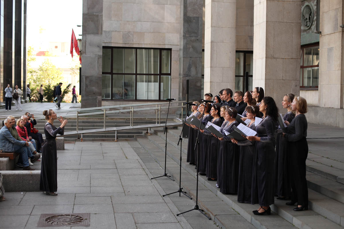 Праздничную программу открыло вдохновенное выступление хора Ленинки, исполнившего песни о столице и задавшего тон всему вечеру.