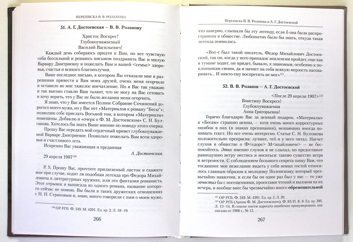 Приведённые в переписке факты свидетельствуют не только о дружеских личных отношениях между Розановым и Достоевской, они важны для понимания истории литературного процесса и сложных коллизий, окружавших творческое наследие Достоевского.