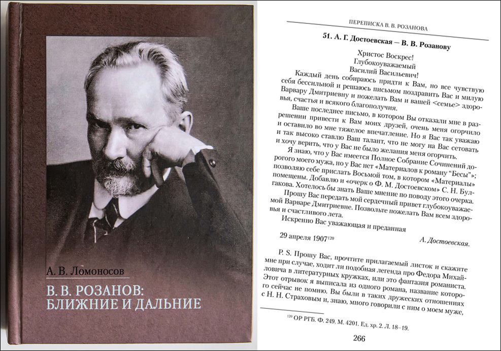 Письма А. Г. Достоевской и В. В. Розанова 1907 года на cтраницах издания «В. В. Розанов: ближние и дальние. Переписка В. В. Розанова»