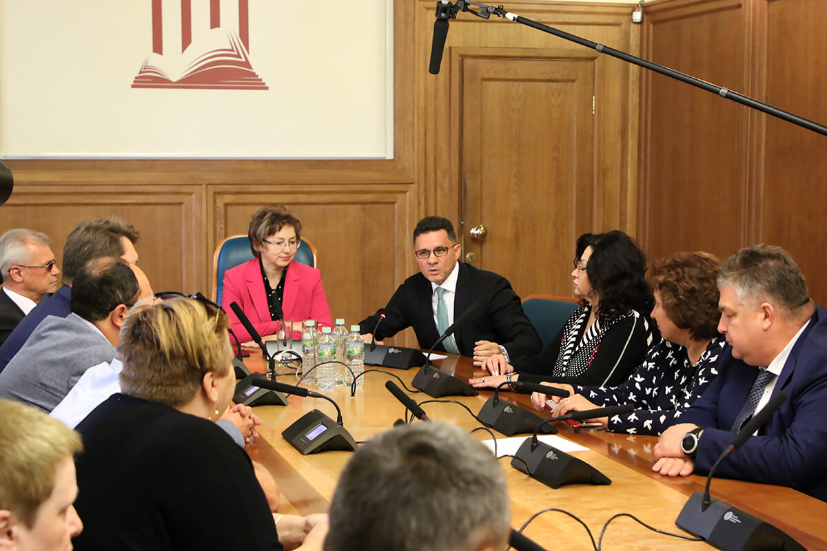 Ольга Сергеевна Ярилова поблагодарила Владимира Ивановича Гнездилова, который два года исполнял обязанности генерального директора РГБ, за проделанную им большую сложную работу. Владимир Иванович остаётся в библиотеке на посту исполнительного директора и, как подчеркнула заместитель Министра культуры РФ, в РГБ сохраняется преемственность — и это очень важно.